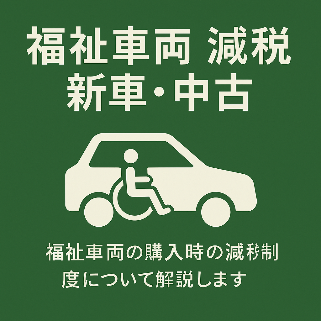 | 消費税非課税 | 身体障がい者本人または介助者が使用する目的の車両は非課税になります。 | 新車・中古どちらも対象 |