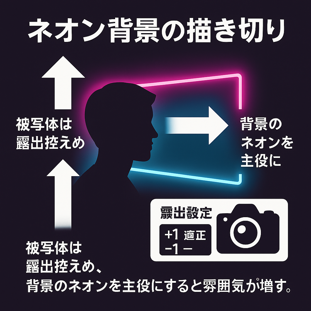 - 道頓堀は背景ネオンを主役に、被写体はシルエット寄りでも◎。